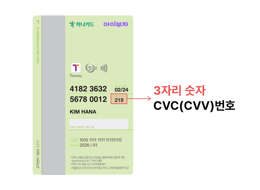 아이부자카드를 처음 만들고 사용등록할 때, 가장 많이 물어보시는 질문 중 하나인 CVC(CVV) 번호!