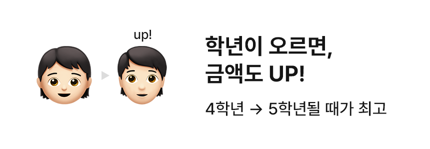 기본적으로 부모, 자녀 모두 학년이 오를수록 금액이 높아졌어요.