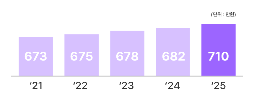 2025년 연평균 등록금 710만원(4년제 사립대 기준),