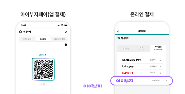 기존에는 하나카드앱이나 네이버페이앱을 설치해야 간편 결제 서비스를 이용할 수 있었어요. 하지만 이젠 아이부자앱 하나만 있어도 되니까 더 심플하고 간편하죠!