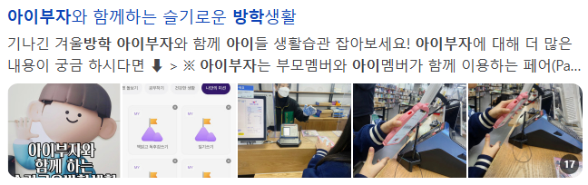 | 아이부자 1기 부모 서포터즈 리뉴얼앱 사전 체험 (11) | 2024.11.14 |