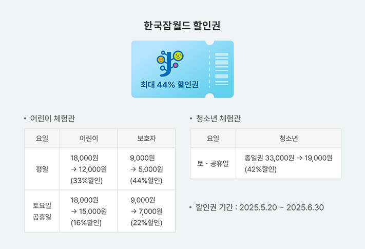 ※한국잡월드 할인권 관련 문의는 한국잡월드 고객센터를 통해 확인 부탁드립니다.(1644-1333)