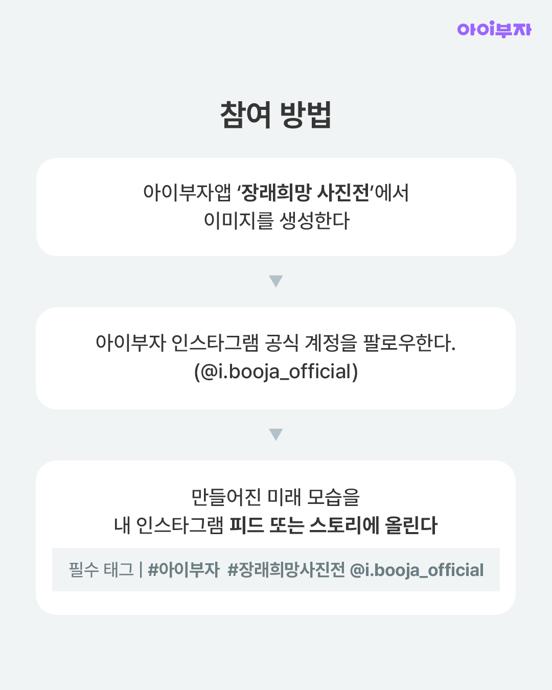 ※인스타그램 공유 이벤트에 대한 상세 가이드 및 안내는 아이부자 공식 인스타그램(@i.booja_official) 게시글을 통해 확인 부탁드립니다.