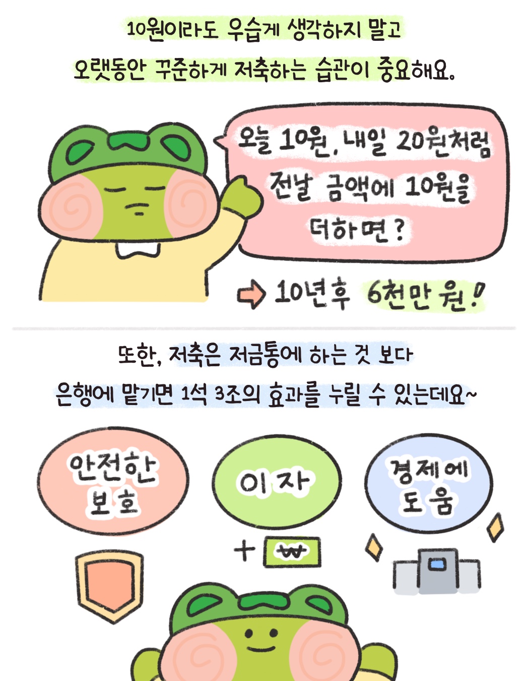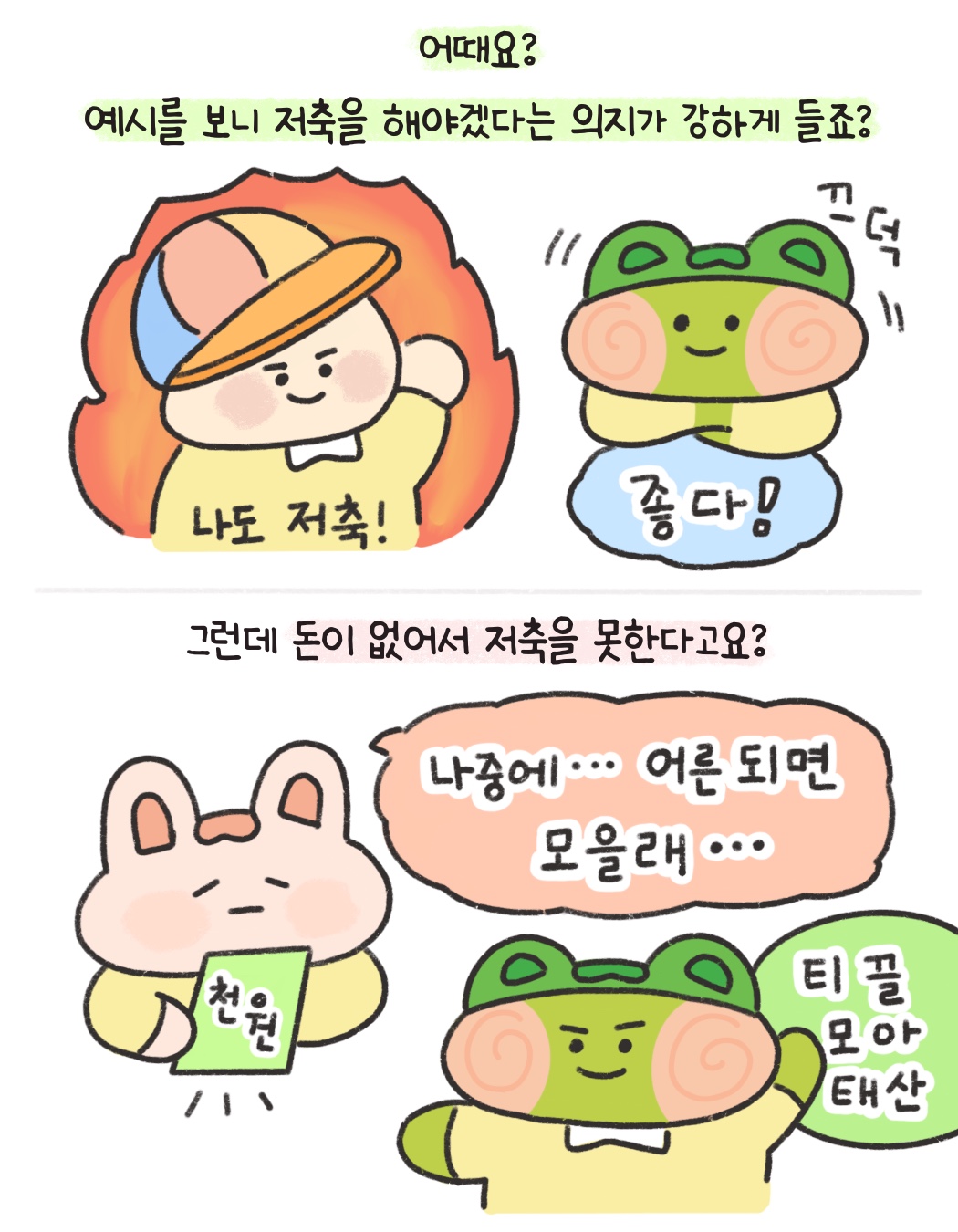 물론 우리는 아직 어른들처럼 큰 금액을 모으기 어려울 수 있어요.