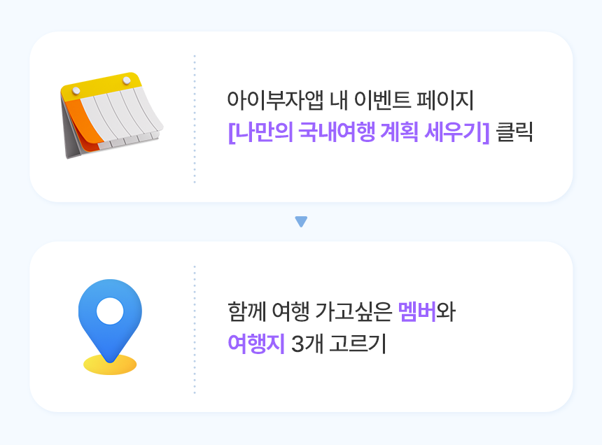 함께 여행 가고 싶은 멤버와 여행지 3개 고르기