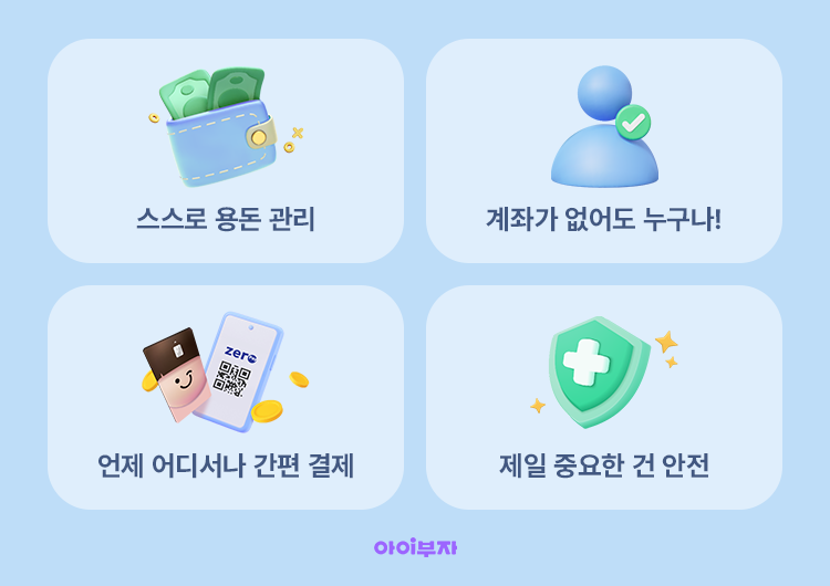 - 제로페이 : 제로페이 가맹점이면 어디서나 간편하게 결제할 수 있어요.